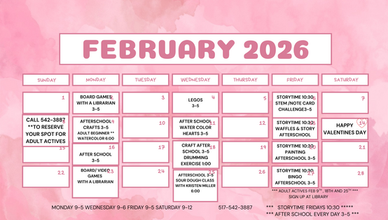 Call and reserve your spot for adult events 517-542-3887